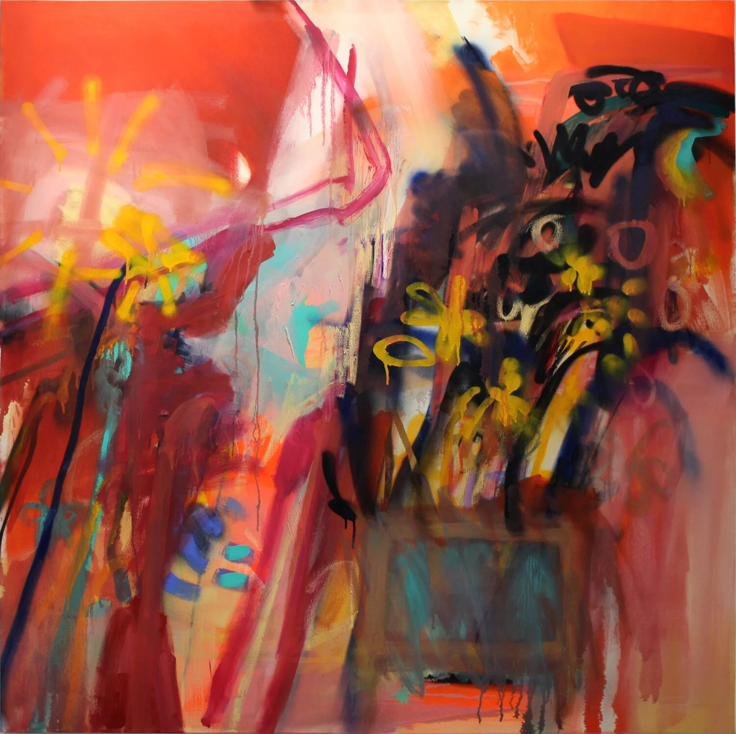 ARTWORK SIZES RANGE FROM 60 - 180CM SQUARE. FEATURING A RANGE OF MATERIALS INCLUDING OIL, ACRYLIC AND SPRAY PAINTS, CHARCOAL AND GRAPHITE APPLIED TO CANVAS