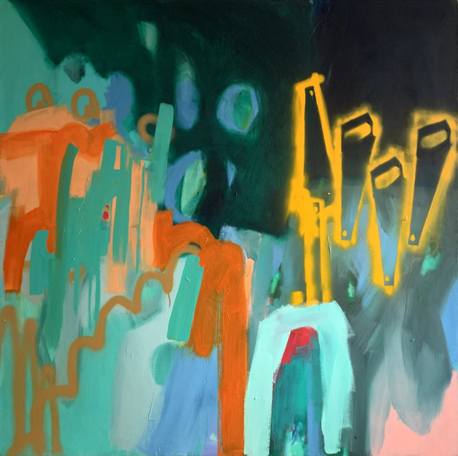 oil, acrylic and spray paint on canvas