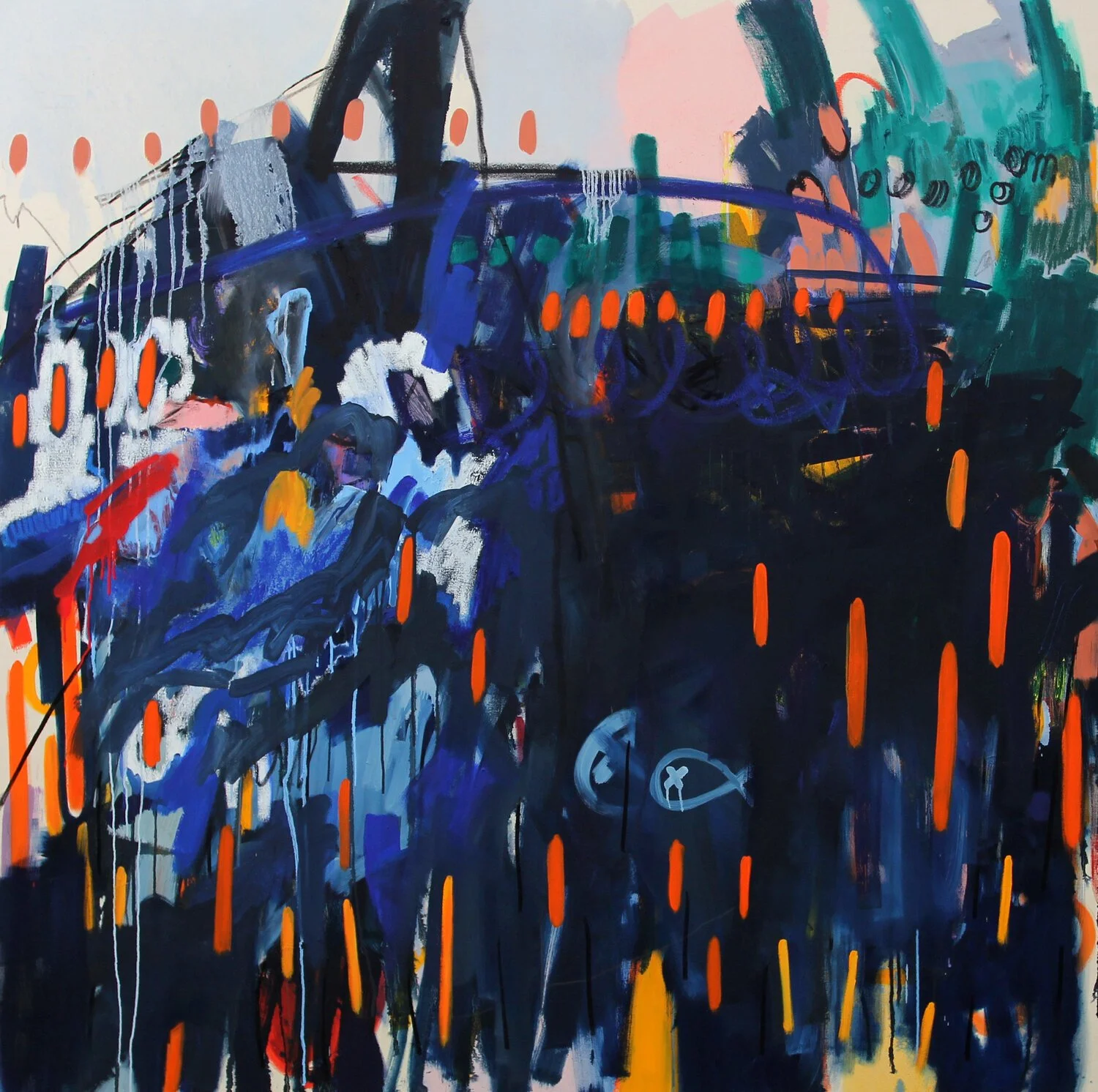 TO SINK OR SWIM - Oil & Spray Paint on Canvas - 150 x 150 cm